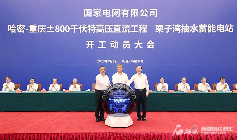 8月8日上午,國家電網有限公司在新疆和重慶同步舉行哈密—重慶±800千伏特高壓直流工程和栗子灣抽水蓄能電站開工動員大會,標志著“疆電外送”第三通道建設正式啟動。自治區(qū)黨委書記馬興瑞、重慶市委書記袁家軍和國家電網有限公司董事長辛保安、國家能源局副局長余兵出席會議并講話。