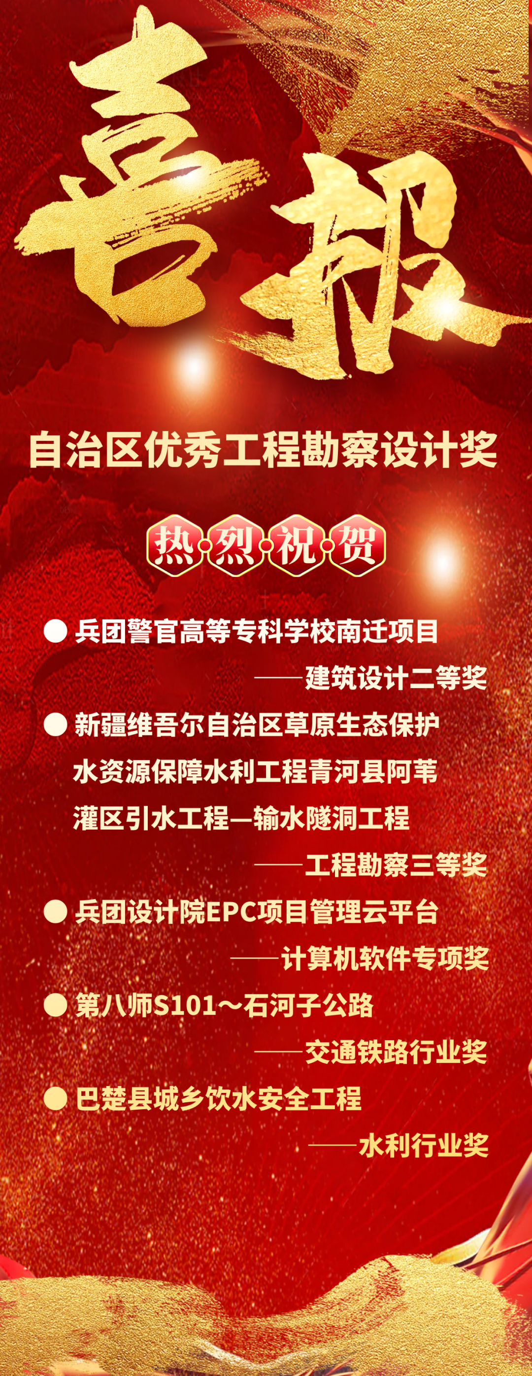 喜報 兵團設(shè)計院獲多項自治區(qū)優(yōu)秀工程勘察設(shè)計獎