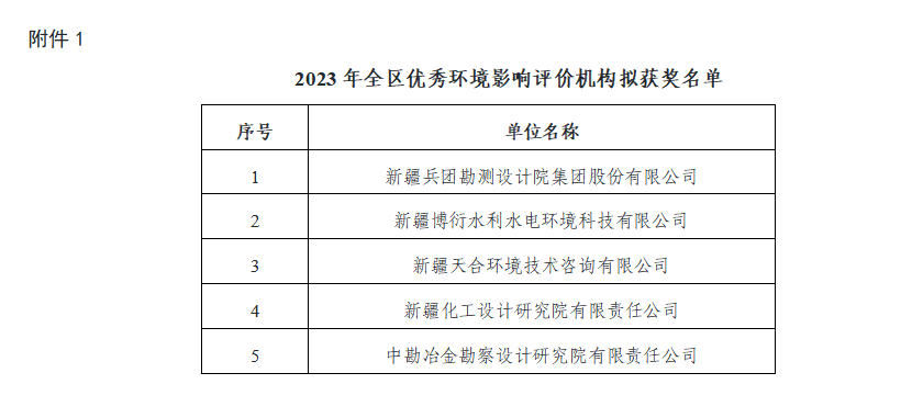 附件:1、2023年全區(qū)優(yōu)秀環(huán)境影響評(píng)價(jià)機(jī)構(gòu)擬獲獎(jiǎng)名單