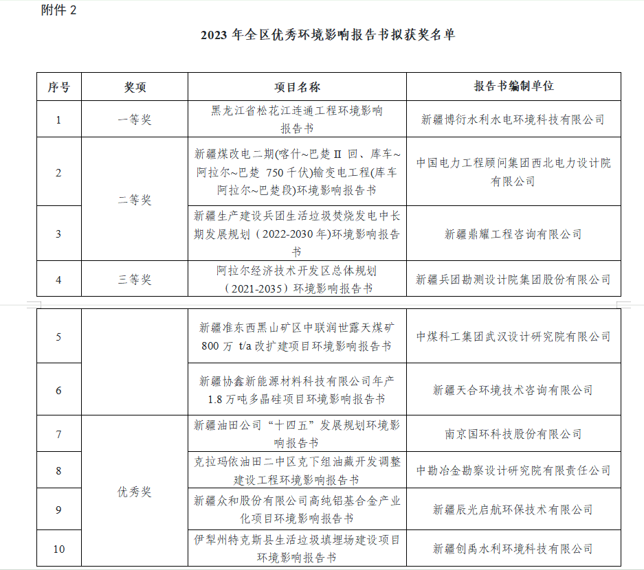 2、2023年全區(qū)優(yōu)秀環(huán)境影響報(bào)告書擬獲獎(jiǎng)名單