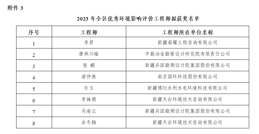 3、2023年全區(qū)優(yōu)秀環(huán)境影響評(píng)價(jià)工程師擬獲獎(jiǎng)名單