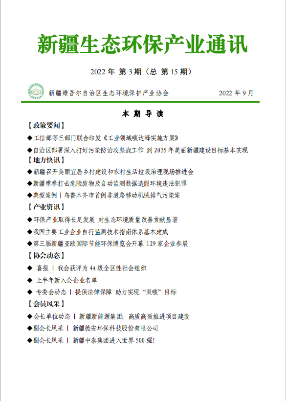 2022年新疆生態(tài)環(huán)保產(chǎn)業(yè)通訊(第十五期)