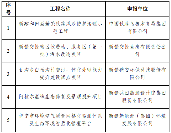 2023年自治區(qū)生態(tài)環(huán)境保護(hù)優(yōu)秀示范工程名單