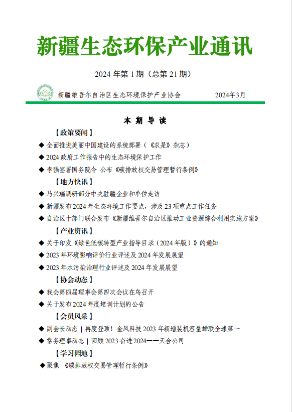 2024年第一季度新疆生態(tài)環(huán)保產(chǎn)業(yè)通訊(第二十一期)
