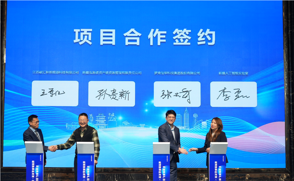 江蘇碳匯林新能源科技有限公司、羅克佳華科技集團(tuán)股份有限公司、新疆泓源碳資產(chǎn)碳資源管理有限責(zé)任公司等多家企業(yè)在會(huì)議期間簽訂合作協(xié)議。