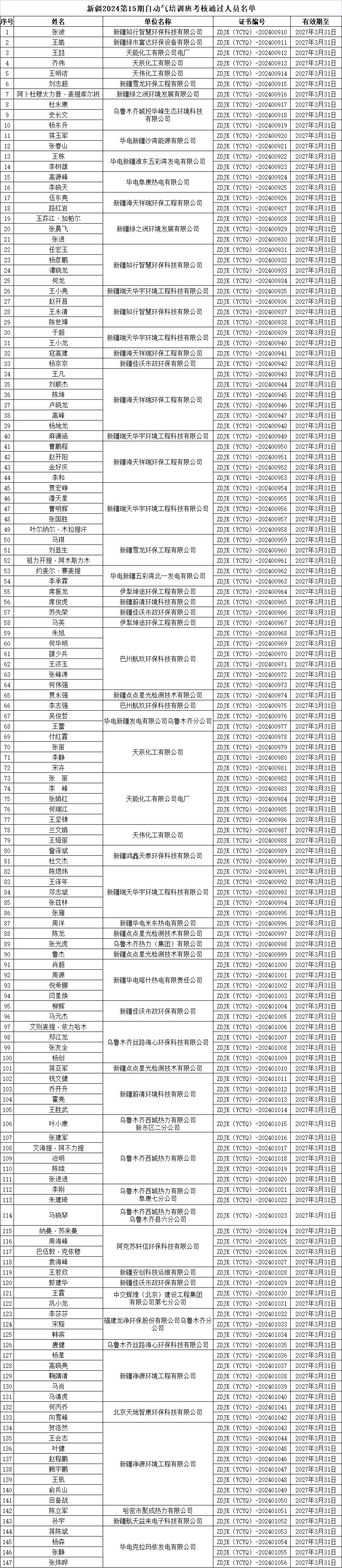 2024年第15期煙塵煙氣連續(xù)自動(dòng)監(jiān)控系統(tǒng)運(yùn)行人員培訓(xùn)閱卷批卷及考勤梳理工作已完成,現(xiàn)將此次培訓(xùn)考核通過名單公布如下: