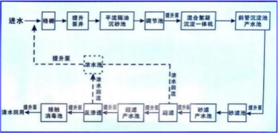 工藝流程:生產(chǎn)廢水處理廠應(yīng)用“高寒高海拔特長隧道工程潛在多污染廢水處理回用系統(tǒng)”,采用“沉砂調(diào)節(jié)—混凝沉淀—砂濾—超濾—反滲透”的工藝,處理施工生產(chǎn)中產(chǎn)生的施工廢水和生活污水。