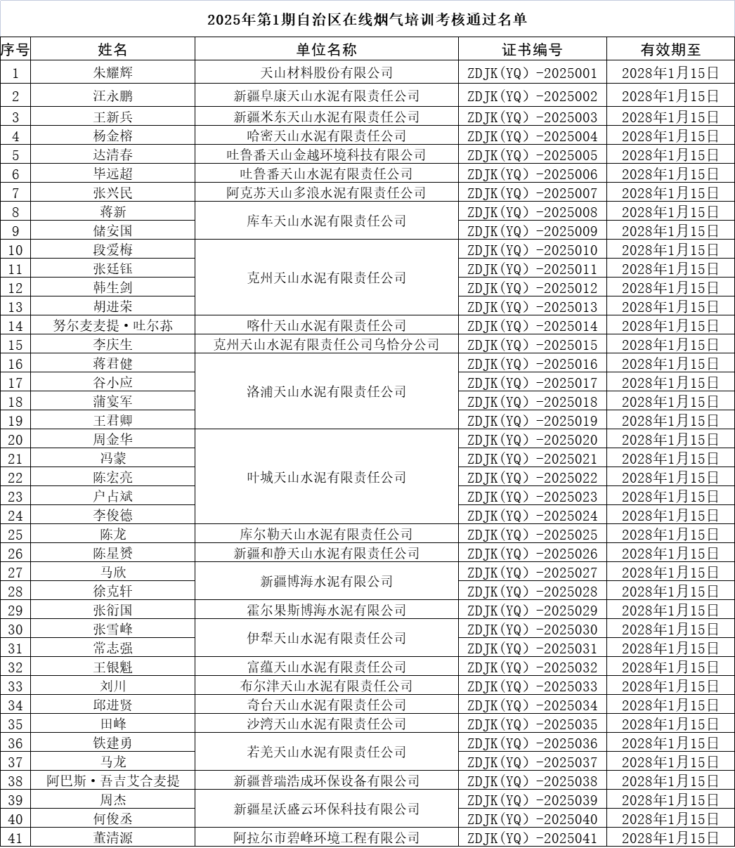 ?2025年第1期自治區(qū)煙塵煙氣連續(xù)自動監(jiān)控系統(tǒng)運行人員培訓(xùn)班考核通過名單公布