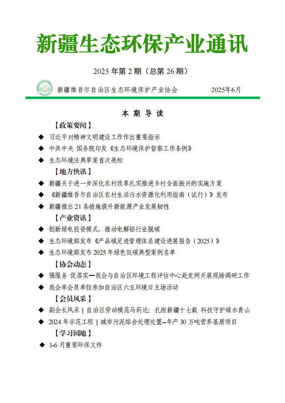 2025年第二季度新疆生態(tài)環(huán)保產(chǎn)業(yè)通訊(第二十六期)