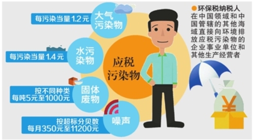 排污費改環(huán)保稅,運行38年的排污費制度將成為歷史。費改稅遵循“稅負平移”的原則,按照“企業(yè)申報、稅務征收、環(huán)保協(xié)同、信息共享”的征管模式,納稅人需要自行申報大氣污染物、水污染物、固體廢物和噪聲四類污染物應繳納的環(huán)境保護稅。對固體廢物和噪聲實行固定稅額,其中,固體廢物按不同種類,稅額為每噸5元~1000元;噪聲按超標分貝數(shù),稅額為每月350元~11200元。納稅義務發(fā)生時間為納稅人排放應稅污染物的當日,環(huán)保稅按月計算,按季申報繳納。