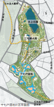 濕地游覽段的規(guī)劃思路是通過暗管、水系景觀連通金泉公園、迎賓館、十七戶濕地、淺水灣生態(tài)公園。其中,水上樂園與十七戶濕地之間區(qū)域,結(jié)合棚戶區(qū)改造形成景觀水系,十七戶濕地區(qū)域通過再生水補(bǔ)給形成濕地水景觀,最終整個(gè)片區(qū)將形成以濕地景觀為特色,集休閑觀光、科普宣教等功能于一體的城市濕地特色游覽段。