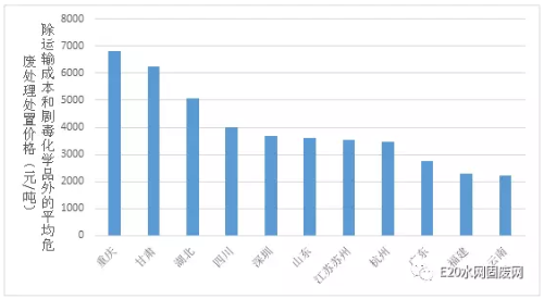 圖1.不完全統(tǒng)計各地危廢處理處置平均指導價