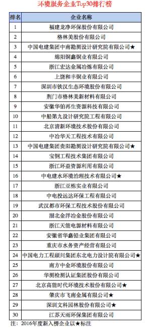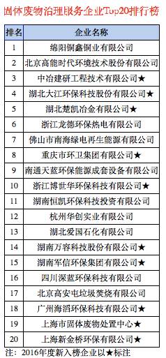 2016年環(huán)境服務(wù)業(yè)及細分領(lǐng)域最新排名權(quán)威發(fā)布(企業(yè)排行榜)