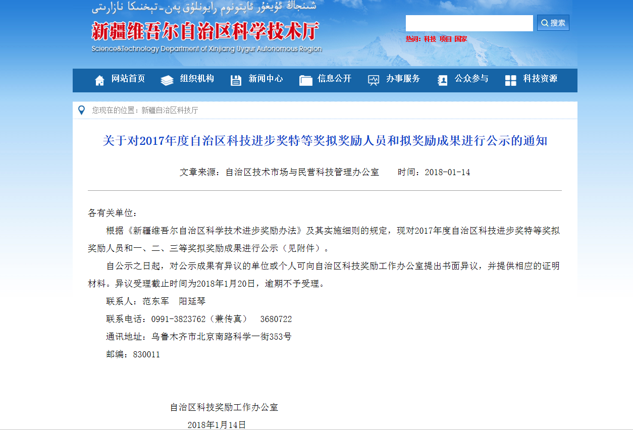 2017年度自治區(qū)科技進(jìn)步獎特等獎擬獎勵人員和擬獎勵成果進(jìn)行公示 我會多家成員單位入選獲獎名單