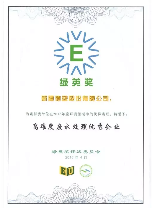 中國環(huán)境產(chǎn)業(yè)綠英獎—高難度廢水處理優(yōu)秀企業(yè)