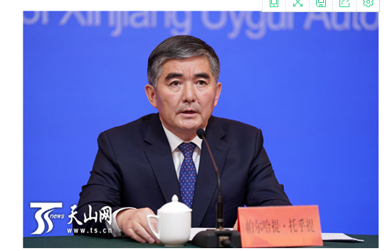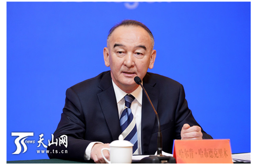 自治區(qū)生態(tài)環(huán)境廳廳長哈爾肯•哈布德克里木回答記者提問。
