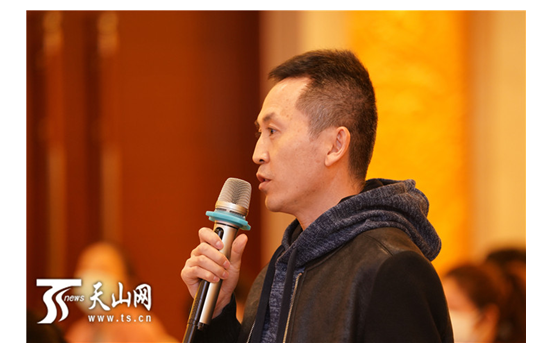 自治區(qū)人大環(huán)境與資源保護工作委員會主任帕爾哈提•托乎提回答記者提問。
