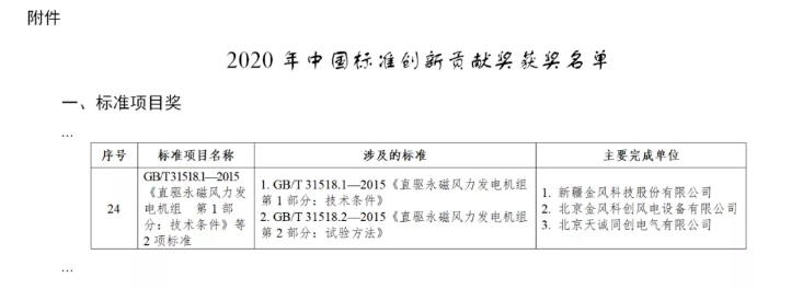 金風(fēng)科技首獲中國標(biāo)準(zhǔn)創(chuàng)新貢獻(xiàn)獎(jiǎng)