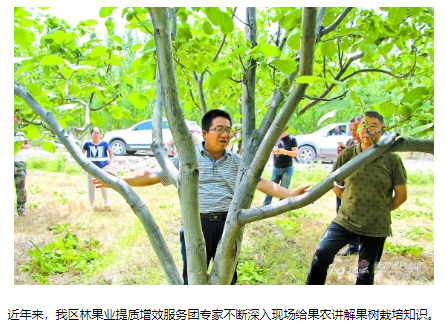 ——新品種新技術推廣應用增強。2018年以來,全區(qū)累計嫁接改造果樹2102.1萬株、疏密改造346.7萬畝、整形修剪1.084億畝次、疏花疏果252.6萬畝次、漚制施用有機肥4337.8萬立方米、石硫合劑防治5579.9萬畝次、主要病蟲害防治3704.1萬畝次;累計投資6081萬元,實施林果科技示范推廣項目70項,編制林果栽培管理和生產(chǎn)技術標準33項。