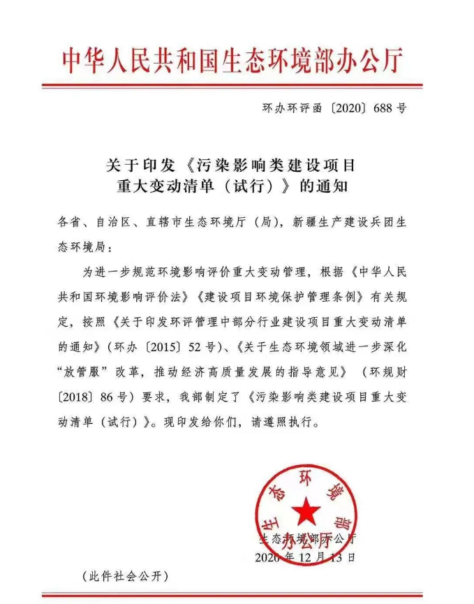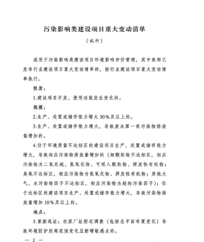 全文|生態(tài)環(huán)境部印發(fā)《污染影響類建設項目重大變動清單(試行)》