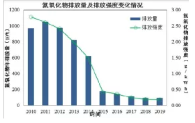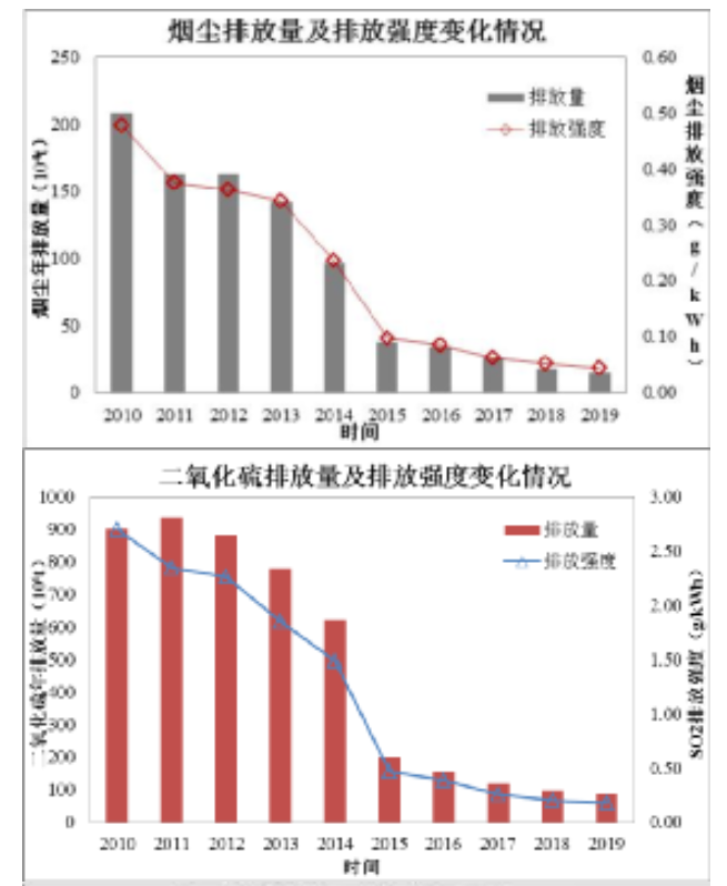 煤電超低排放改造的深入實施推動了煙氣污染物排放量與排放強度的“雙降低”。截至2019年底,累計完成超低排放改造燃煤機組約8.9億千瓦,約占全國煤電總裝機的86%,行業(yè)排放煙塵、二氧化硫和氮氧化物18萬噸、89萬噸和93萬噸,占全國相應(yīng)污染物排放總量的比例降至2.40%、10.81%和7.85%。排放績效分別為0.036克/千瓦時、0.176克/千瓦時和0.184克/千瓦時,繼續(xù)處于國際領(lǐng)先水平。