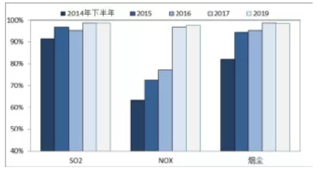 注:1.2014年下半年-2016年:1198家火電企業(yè)2847個排放口在線監(jiān)測數(shù)據(jù)。2.2017年:112個企業(yè)329個排口在線監(jiān)測數(shù)據(jù)。3.2019年:1835家火電企業(yè)4048個排放口在線監(jiān)測數(shù)據(jù)。