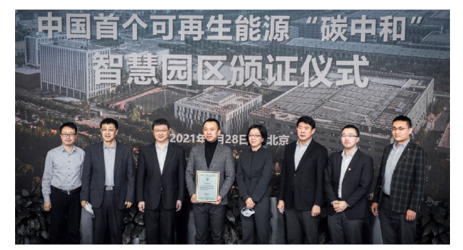 ↑ 金風(fēng)科技亦莊智慧園區(qū)獲中國(guó)首個(gè)可再生能源“碳中和”智慧園區(qū)認(rèn)證