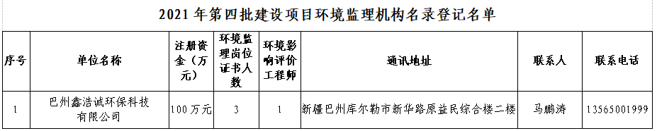通過建設(shè)項(xiàng)目環(huán)境監(jiān)理機(jī)構(gòu)名錄登記的機(jī)構(gòu)名單公示名單公示2021年第四批