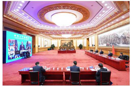 4月22日晚,應(yīng)美國總統(tǒng)拜登邀請(qǐng),國家主席習(xí)近平在北京以視頻方式出席領(lǐng)導(dǎo)人氣候峰會(huì),并發(fā)表題為《共同構(gòu)建人與自然生命共同體》的重要講話。新華社記者 燕雁 攝