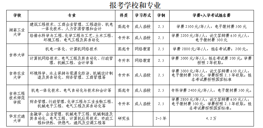 (一)報考高校:湖南工業(yè)大學(xué)、吉林大學(xué)、吉林農(nóng)業(yè)大學(xué)、吉林工程技術(shù)師范學(xué)院、華東交通大學(xué);