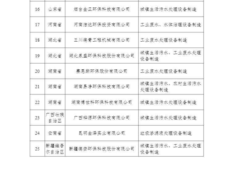 新疆德安環(huán)??萍脊救雵稀董h(huán)保裝備制造行業(yè)(污水治理)規(guī)范條件》企業(yè)名單(第三批)