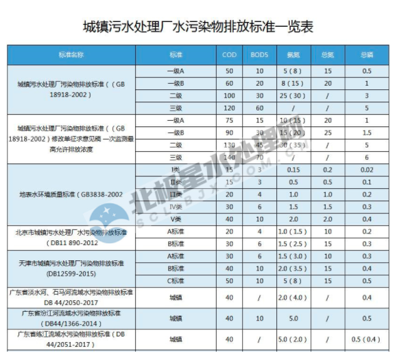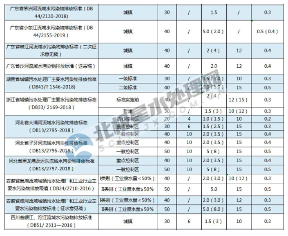 最新!全國各地城鎮(zhèn)污水處理廠水污染物排放標(biāo)準(zhǔn)一覽表