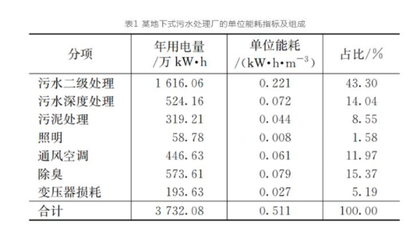 地下式污水處理廠能耗指標(biāo)分析及節(jié)能方向