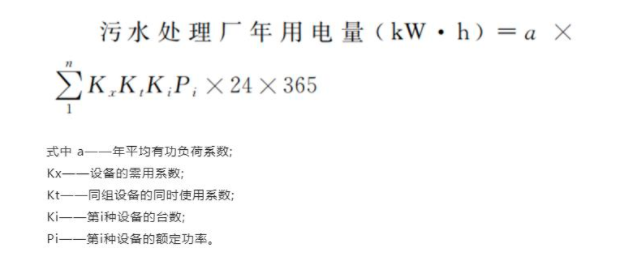 污水處理廠的能耗指標(biāo)以實(shí)際運(yùn)行的數(shù)據(jù)最為準(zhǔn)確。但實(shí)際運(yùn)行數(shù)據(jù)由于涉及到商業(yè)秘密,往往較難獲得準(zhǔn)確可靠的數(shù)據(jù)。因此污水處理廠能耗指標(biāo)的分析還是以理論計(jì)算為主。污水處理廠單位能耗指標(biāo)通常用污水處理廠年用電量除以年處理水量獲得。年用電量通常采用全廠用電設(shè)備的計(jì)算容量乘以用電負(fù)荷的日平均系數(shù)、年電能利用率和運(yùn)行時(shí)間來(lái)計(jì)算。而全廠用電設(shè)備的計(jì)算容量為全廠用電設(shè)備的額定功率乘以需用系數(shù)和同時(shí)使用系數(shù)。因此污水處理廠單位能耗指標(biāo)的計(jì)算見(jiàn)式(1):