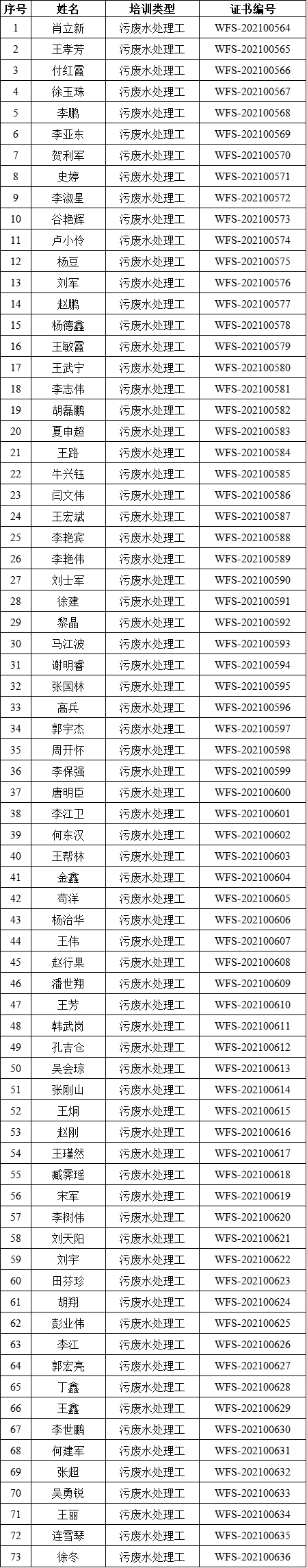 2021年第五期環(huán)境保護(hù)設(shè)施運(yùn)行人員(污廢水處理工)線上培訓(xùn)考試合格名單