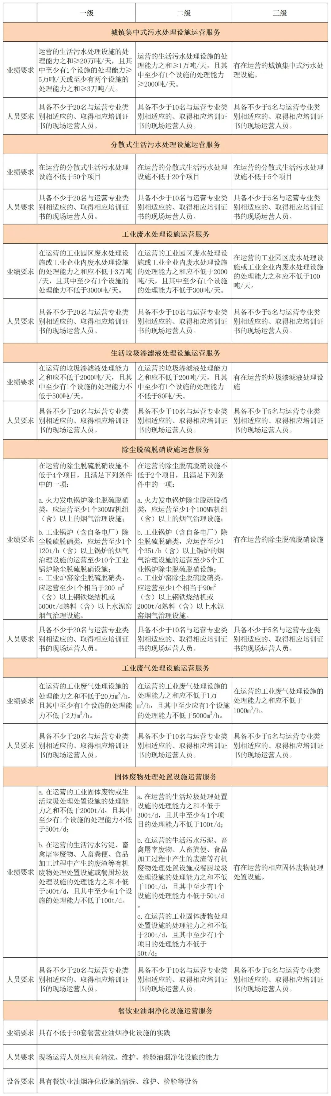 二、污染治理設(shè)施運行服務(wù)能力認(rèn)證條件及等級
